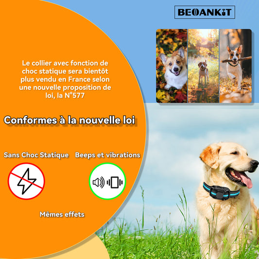 Collier Vibrant-Conformes à La Nouvelle Loi 2024-Collier Anti Aboiement, sans Choc Statique avec 8 Niveaux de Sensibilité Réglables, 8 Niveaux et 3 Modes